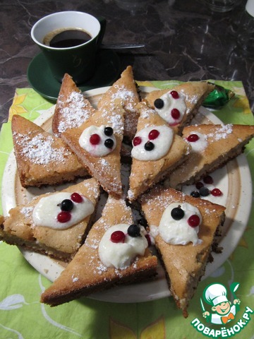Пирог получается достаточно сладким, если уменьшить количество сахара, добавить соли, то можно его подавать к мясным и овощным блюдам.