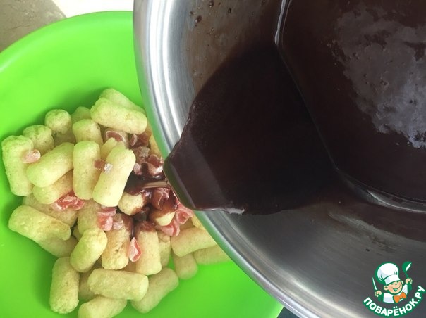 Поливаем кукурузные палочки и мармелад полученной заливкой )