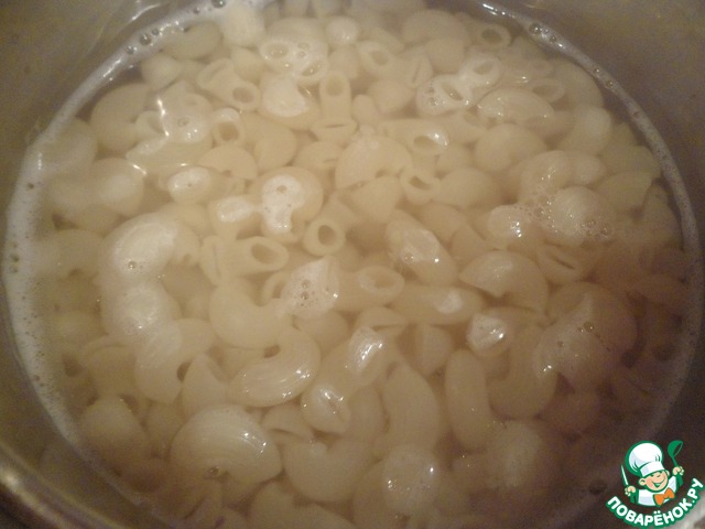 В подсоленную кипящую воду положить макароны и сварить до готовности.