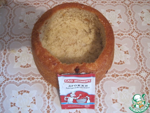 У остывшего кулича вынимаем мякоть, оставляя по краям 1,5 см