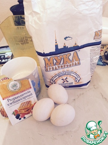 Высыпаем муку, разрыхлитель и ванилин. Размешием все ложкой до однородной массы. И выливаем в форму для выпечки. В моем случае это смазанная маслом растительным эмалированная чашка, т. к еще не успела приобрести нужную форму. Затем ставим получившееся в заранее нагретую до 200 градусов духовку на 20-25 минут