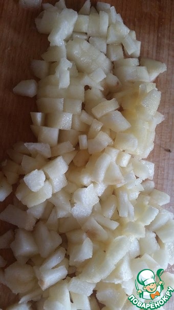 Отставим пока наши чаши со смесями. И порежем 3 груши, на мелкие кубики
