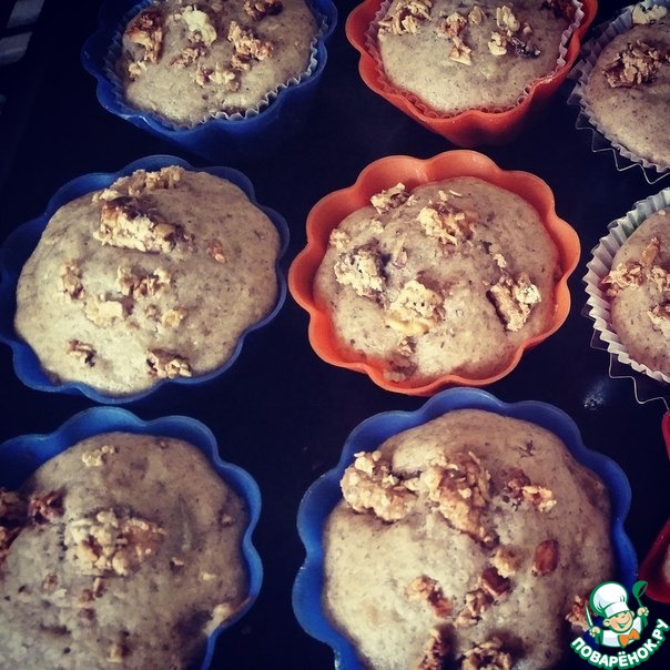 Выложим ложкой в формы. Сверху выложим ореховую гранолу. Я делала по этому рецепту http://www.povarenok .ru/recipes/show/696 03/ и поставим в духовку на 20 мин, при Т 180 гр.