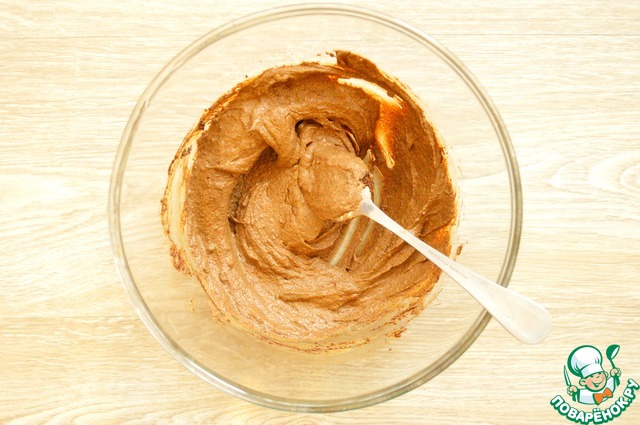 Смешать черёмуховую массу с взбитым яйцами.