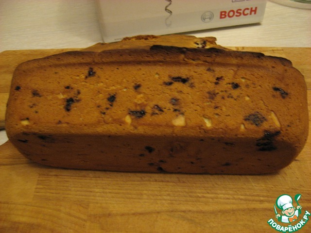 В смазанную маслом форму выкладываем тесто на 2/3 объема (кекс очень сильно поднимается!) и ставим в нагретую до 160 градусов духовку. Печем до сухой спички.