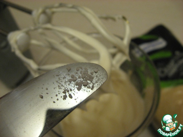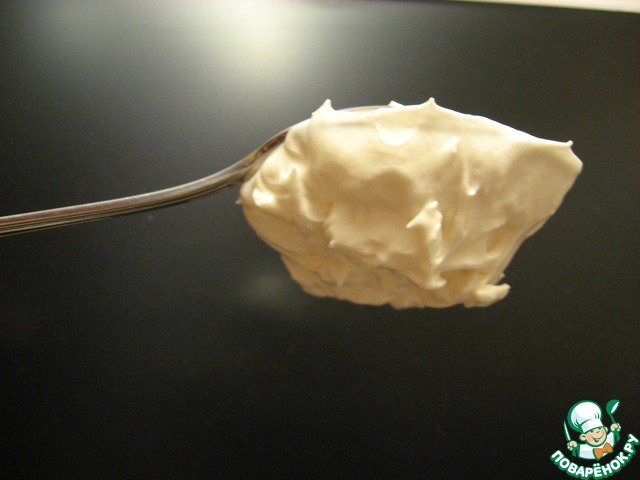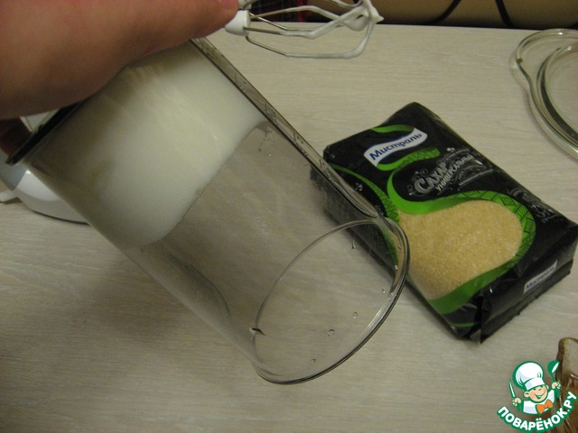 Миксером взбиваем белок очень хорошо, чтобы он стал густым и не выливался при переворачивании