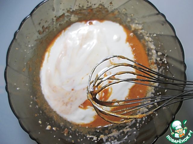 Добавьте сметану и соду, гашеную уксусом, быстро взбейте.
