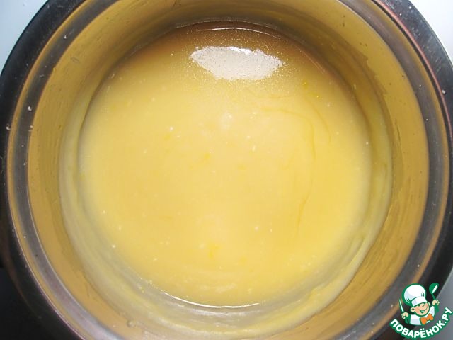 Доведите смесь с лимонным соком почти до кипения и однородной консистенции. Непрерывно помешивая массу венчиком, тонкой струйкой влейте взбитые яйца. Доведите крем до закипания и загустения, не переставая помешивать. Дайте крему остыть в емкости под закрытой крышкой.