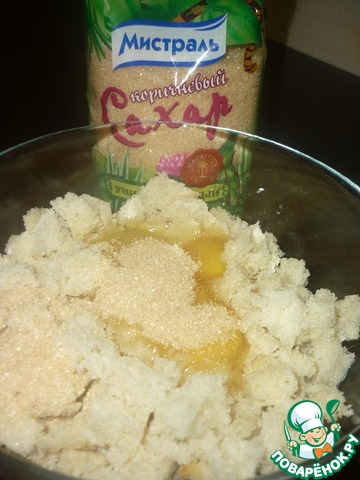 Хлеб или батон режим на мелкие кусочки, корочку убираем.