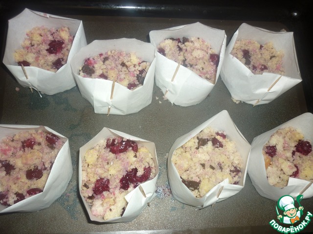 После чего можно выкладывать тесто в формочки (примерно в 2 см), утрамбовываем слегка. Ставим в разогретый до 180 градусов духовой шкаф на 15-20 минут.