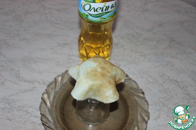 Кладем блинчик на перевернутый стакан и ставим в микроволновую печь на 1-2 минуты