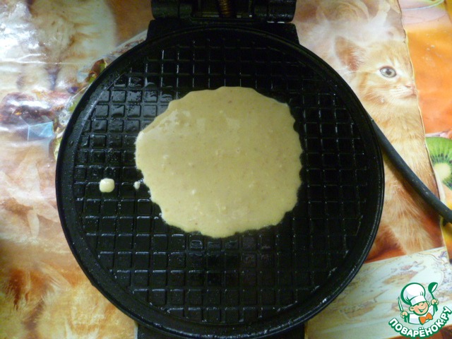 Наливаем по 1 ст. л. теста на середину вафельницы.