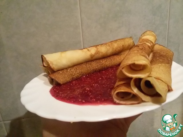 Не пугайтесь, если края будут немного жестковаты, когда блины немного остынут будут очень мягкими. Начинка для них любая:хоть мясо, хоть творог с фруктами, хоть жареная рыба с луком. На вкус блины получаются совсем немного сладковатыми.