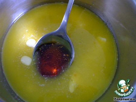 Добавить в растаявшее масло 2 столовые ложки сиропа, перемешать и снять с огня