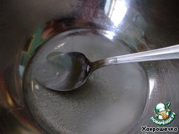 Тем временем насыпать чайную ложку соды в маленькую мисочку, вскипятить чайник и залить соду двумя столовыми ложками кипятка.