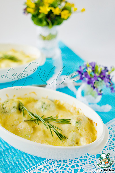 | Овощи, запеченные под аппетитной сырно-сливочной корочкой. Рецепт этого блюда был размещен на сайте в 2008 году пользователем sniper под названием «Гратен из брокколи и цветной капусты» и иллюстрирован мной в рамках акции «Раскраски». |