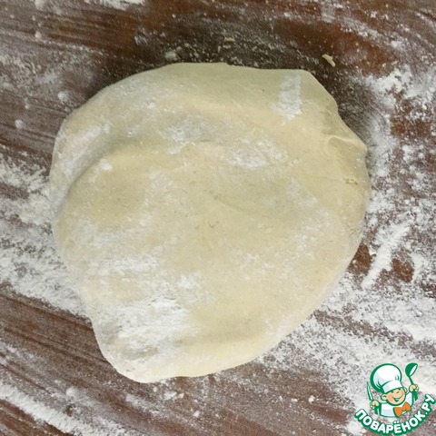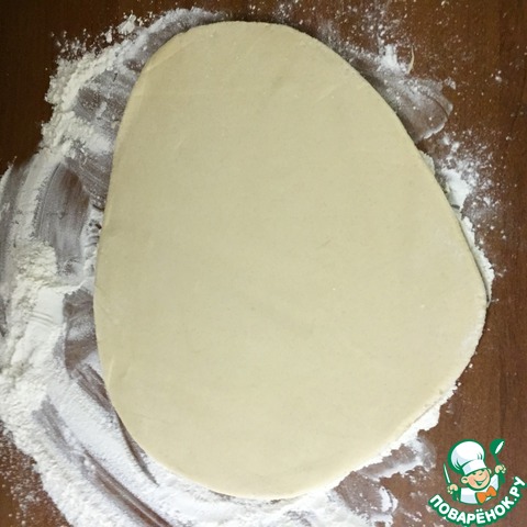 Выложить на стол смазанный мукой, раскатать пласт толщиной 6-7 мм.