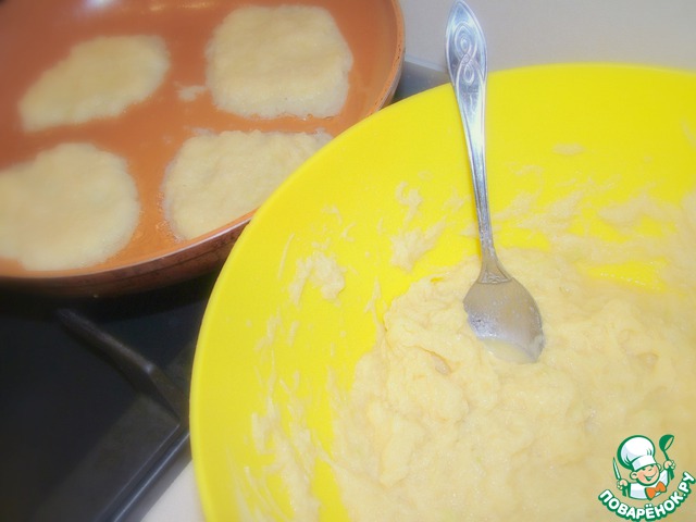 Жарю оладьи на небольшом количестве масла на среднем огне с двух сторон. Овощную массу выкладываю и распределяю ложкой.