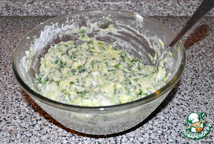 Кабачок тоже тру на этой же терке и добавляю к зелени.