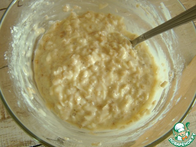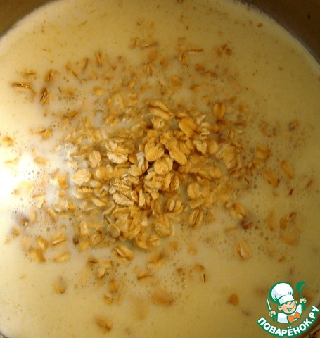 Из молока и овсяных хлопьев сварим кашу. Добавим соль и сахар. Пусть кипит 5 минут. Охлаждаем.