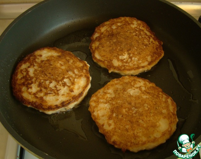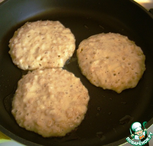 Выкладываем ложкой тесто на разогретую сковороду с небольшим количеством растительного масла.