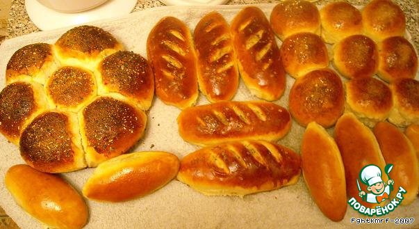 | Мягкие домашние булочки, пирожки с любимой капустой, ромашка с сахарной посыпкой для свекрови... |