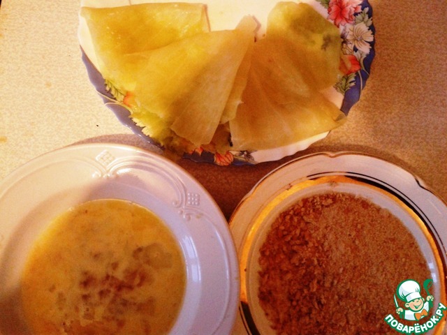Готовые блинчик предварительно выложить на салфетку, чтобы впитался лишний жир;