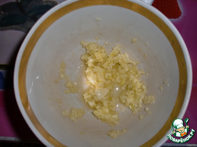 Давим чеснок, смешиваем с 2 ст.л оливкового масла