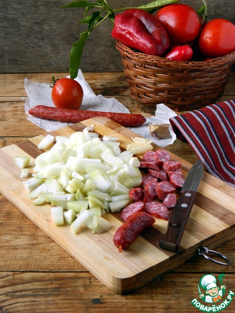 Болгарский перец очистить от семян, нарезать небольшими кусочками.