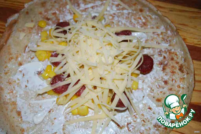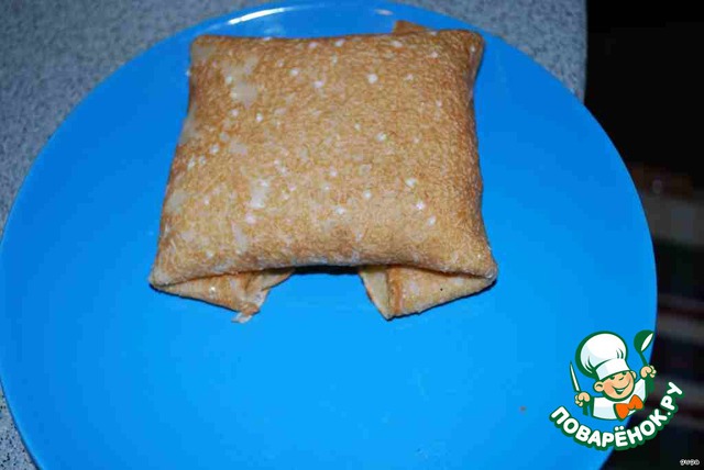 Складываем креп конвертиком и запекаем либо а микроволновке, либо в духовке. Конечно ж, е в микроволновке быстрее, а если еще и с грилем - красота.