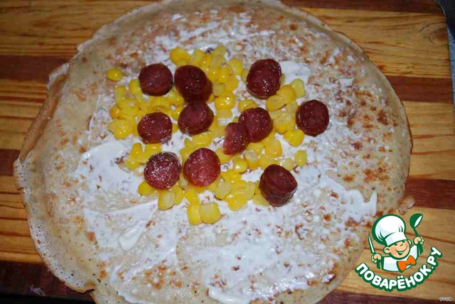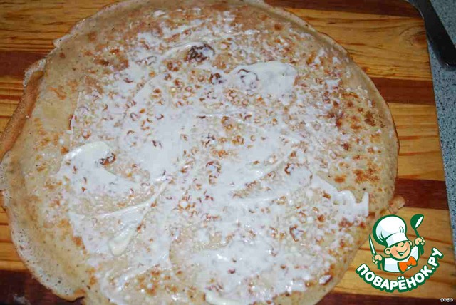 Блинчик смазываем майонезом. Лучше домашним.