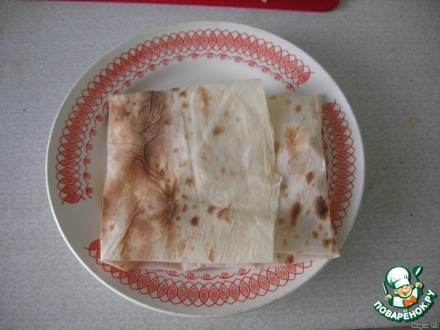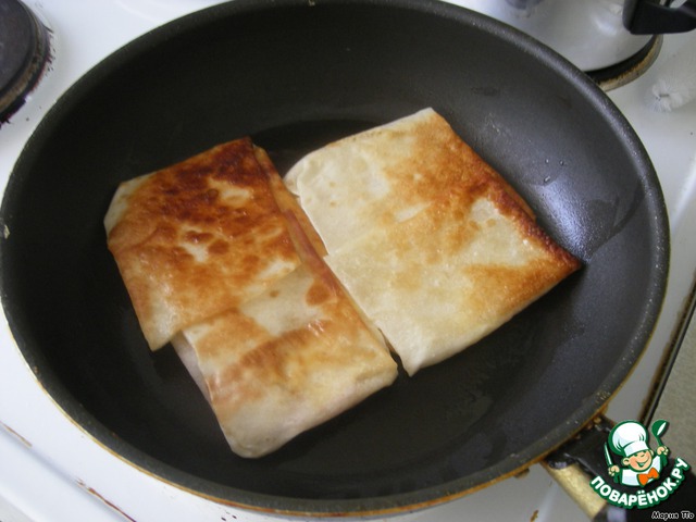 На разогретую с маслом сковороду выкладываем наши лавашики.