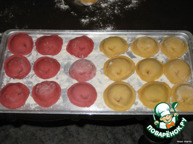 | Появилась идея сделать цветные пельмешки для дочки. Вот что получилось. |