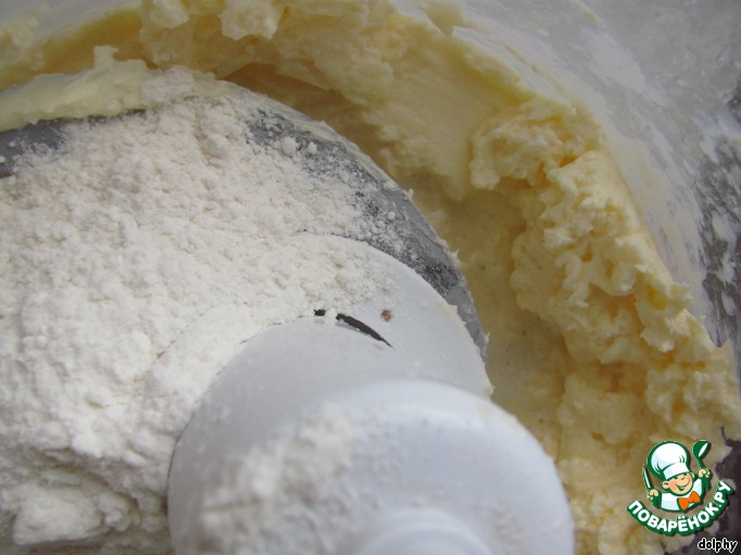 В кухонном комбайне взбейте 125 г масла с 1 яйцом и 1 - 2 ст. л. холодной воды.