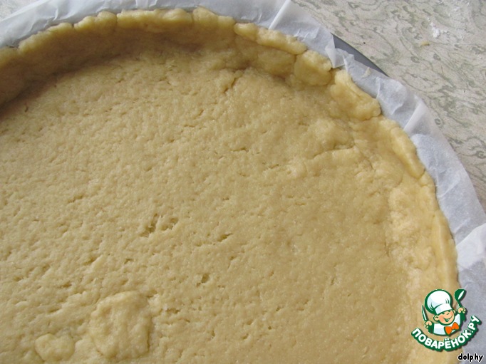 Выложите его в подготовленную форму, наколите дно вилкой. Накройте и уберите в холодильник на 30 минут.