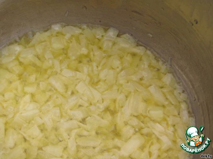 2 ст. л. масла растопите в кастрюле, добавьте лук и обжарьте до мягкости.