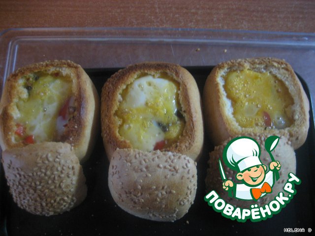 Заливаем сверху яйцами и закрываем крышечками, печь в разогр. духовке при t 180 гр минут 10, открыть крышки и ещё 5 минут.