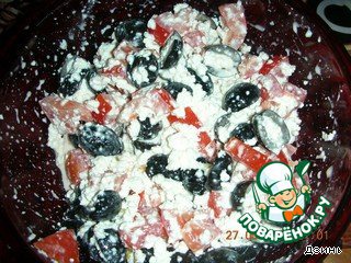 2. Маслины - кружочками, если попадутся мелкие, то просто вдоль пополам