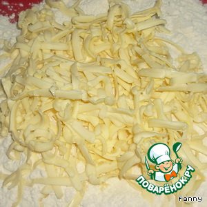Муку просеять на горизонтальную поверхность, настругать масло, хорошо растереть руками, добавить воду, соль и замесить тесто.