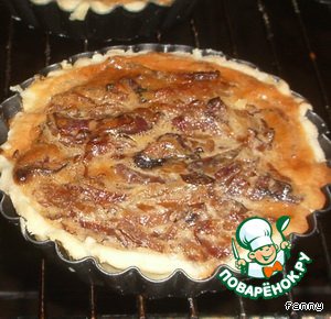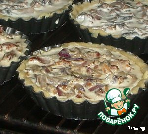 Наполнить формочки с тестом начинкой, равномерно ее распределив.