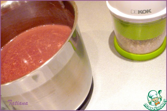 остудите до 40-ка градусов, процедите. Орехи измельчите.