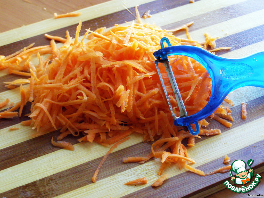 В бульон высыпать промытый рис и выложить натертую морковь. Программа "Плов".