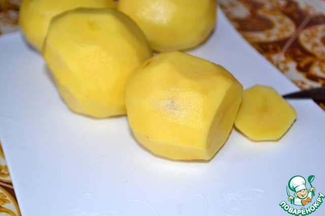 Картофель очистить, с двух сторон срезать по небольшому кусочку (как на фото)