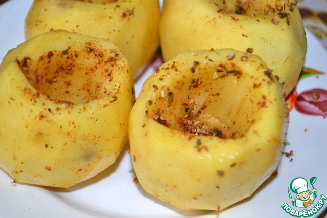 Каждую картошину осыпать солью и специями, пока отложить в сторонку.