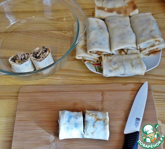Блинчики с мясом под сырной корочкой