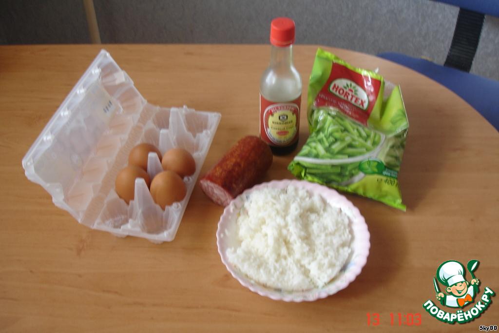 Если со вчерашнего дня остался несъеденный вареный рис, то из него можно быстро и легко приготовить на завтрак вариацию тайского блюда "кау пад" (жареный рис) с отечественным уклоном.