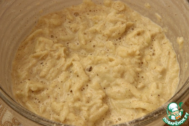 Очистить яблоки от кожуры и сердцевины. Натереть на крупной тёрке. Полить лимонным соком, чтоб не темнели. Добавить по вкусу корицы и мускатного ореха. Перемешать.