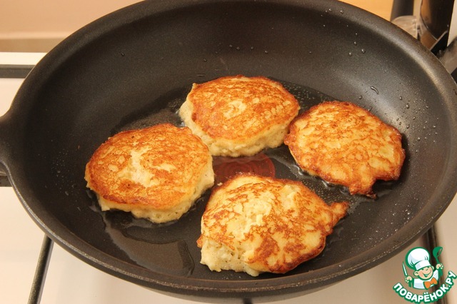 Нагреть сковороду, налить масло ( у меня было оливковое для жарки), выкладывать по столовой ложке и жарить на среднем огне до золотистого цвета с обеих сторон.