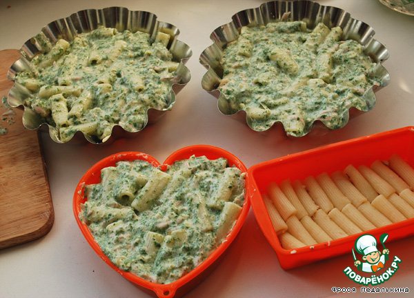 Макаронный торт с творогом и шпинатом