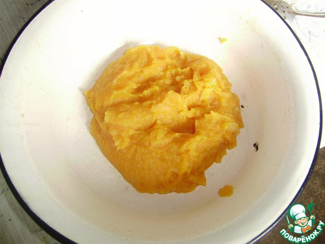 Воду слить, а вареную тыкву и картошку взбить блендером.